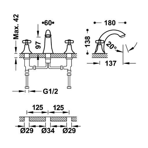 CLASIC TWO-HANDLE FITTED WASHBASIN TAP
