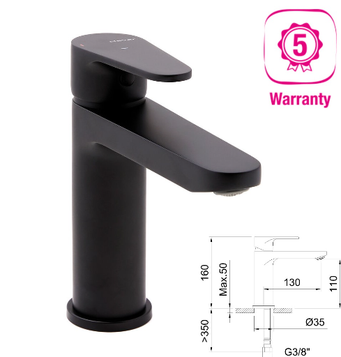 ხელსაბანის შემრევი Rocket Matt Black Basin Mixer